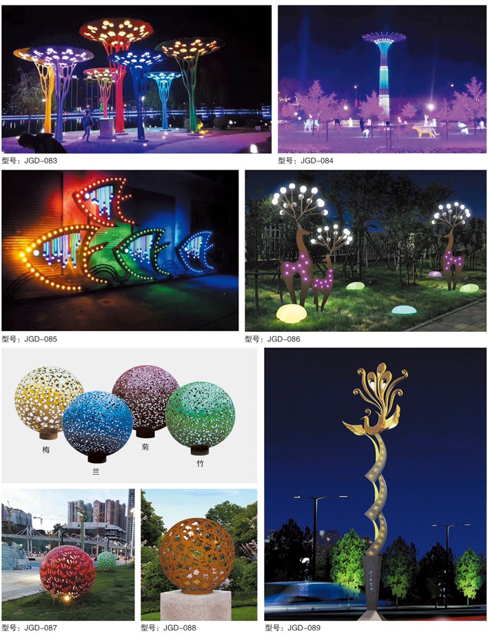 裝飾型景觀燈飾產(chǎn)品。設計風格或抽象前衛(wèi)如藝術雕塑,或仿真寫實如自然常態(tài)。在展示現(xiàn)代精美制造工藝同時,又融入多種具有一定地方或民族文化特式的元素,即可美化亮化環(huán)境,又能成為- -座城市一個地區(qū)一方民族文化的象征。無論是大型文化廣場還是時尚建筑群落都有他適合的道理。極具觀賞和使用價值。