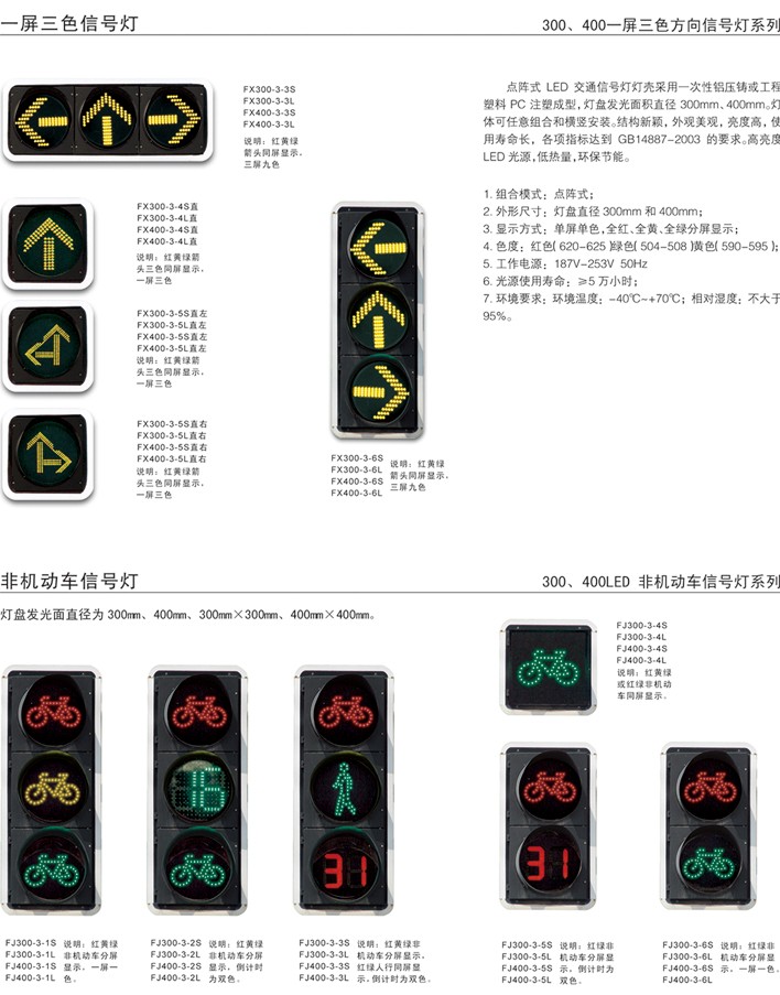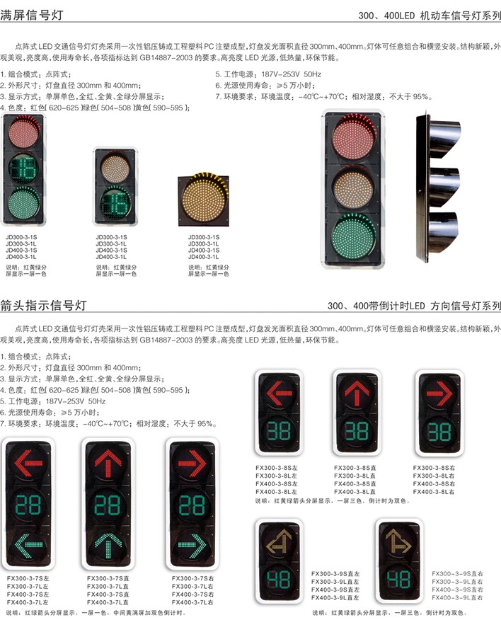 交通信號燈光源采用進口超高亮度LED,具有亮度柔和均勻.無光暈色斑、無顆粒感.無光污染、低功率、大視角、采用恒流源,亮度穩(wěn)定無閃爍。燈殼采用一次性鋁壓鑄或I程塑料( PC )注塑成型,燈盤發(fā)光面直徑為200mm300mm.400mm。燈體可任意組合和橫豎安裝。