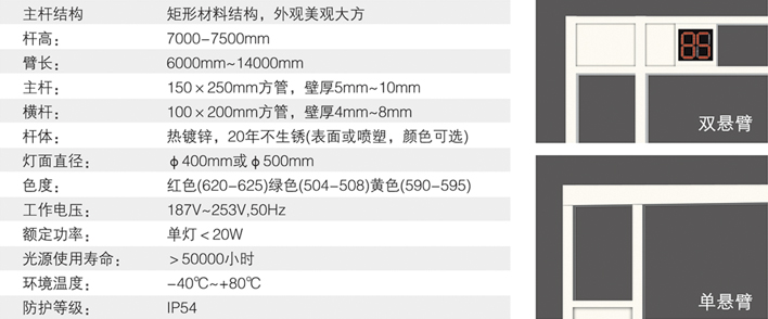 光源采用進(jìn)口超高亮度LED。燈殼采用一次性鋁壓鑄或工程塑料注塑成型,燈盤發(fā)光面直徑為300mm. 400mm。燈桿選用優(yōu)質(zhì)鋼板加工成型,經(jīng)熱鍍鋅處理后表面噴塑。各項(xiàng)技術(shù)參數(shù)均符合中華人民共和國道路交通信號(hào)燈GB14887-2011標(biāo)準(zhǔn)。